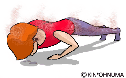 At first, absorb breath deeply so your ectoralis major muscle should be more greatly stretched at the 4 of the right illustration. And Go! 3 count for your arms straighten vomiting breath. 4 count for turnning down with absorbing breath.